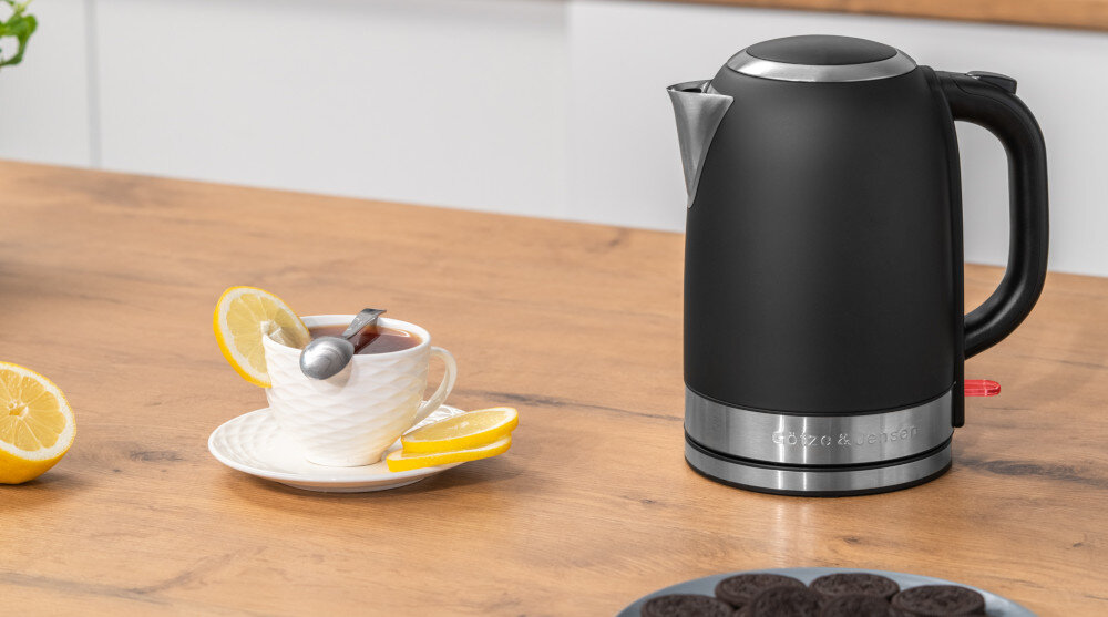 Czajnik elektryczny GÖTZE & JENSEN KT600K charakteryzuje się pojemnością 1,8-litra oraz mocą aż 2150 W. Dzięki temu bez problemu przygotujesz w szybki i łatwy sposób wodę na gorące napoje nawet dla siedmiu osób, więc będzie idealny nawet dla dużej rodziny.