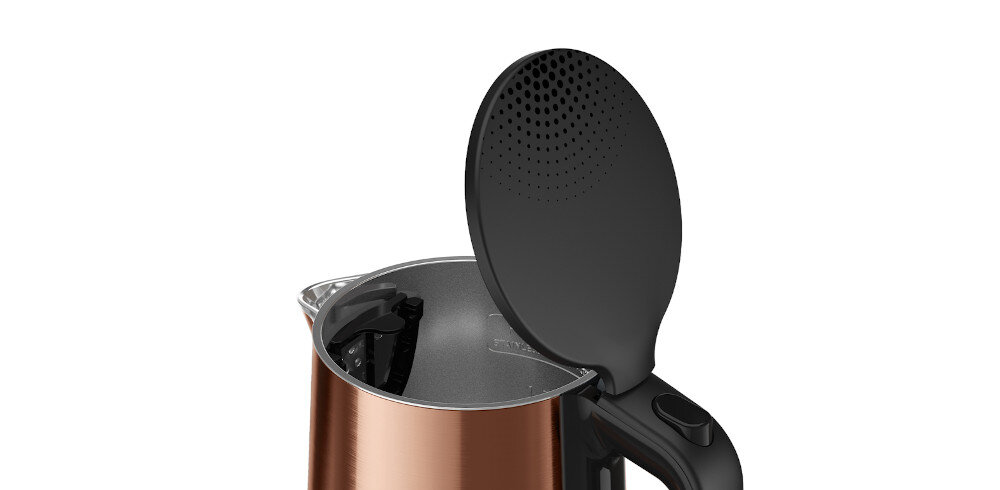 Wygodne napełnianie i czyszczenie urządzenia zapewnia automatyczna pokrywka i duży otwór czajnika.