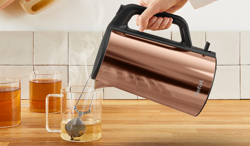 Poznaj czajnik elektryczny Tefal Glorious – sposób na doskonałą herbatę każdego dnia! Ten elegancki czajnik ze stali nierdzewnej wyposażono w podwójne ścianki, które zapobiegają nagrzewaniu się obudowy, a tym samym gwarantują w pełni bezpieczne korzystanie z urządzenia. Dodatkowo, Glorious to pełna gama praktycznych funkcji, takich jak: automatyczne otwieranie pokrywy, filtr zapobiegający osadzaniu się kamienia, łatwy w obsłudze element sterujący z automatycznym wyłączaniem czy wygodna obrotowa podstawa 360°. Optymalna pojemność 1,5 litra idealnie sprawdzi się bez względu na okazję.