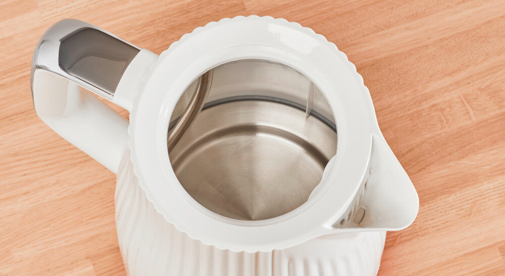Ukryty w obudowie element grzewczy zapewnia szybsze nagrzewanie, a gładka powierzchnia ułatwia czyszczenie wnętrza czajnika.