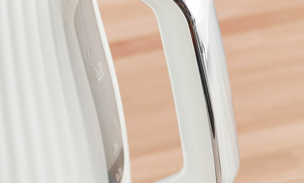 Czajnik jest inspirowany klasyczną brytyjską ceramiką, zdobiony karbowanymi liniami i polerowanymi chromowanymi elementami. To połączenie klasyki i nowoczesności stanowi doskonałą ozdobę każdej kuchni.