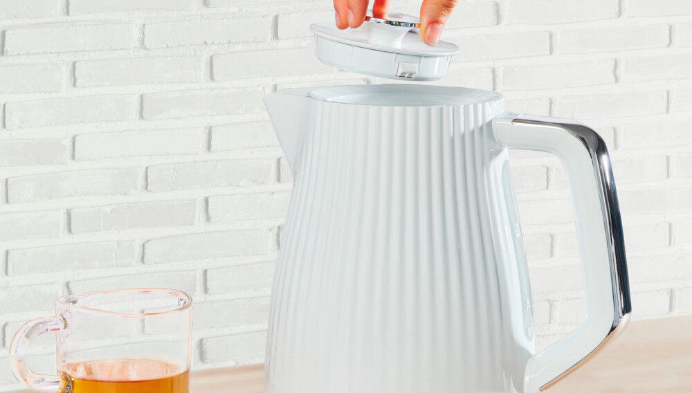 Ukryty w obudowie element grzewczy zapewnia szybsze nagrzewanie, a gładka powierzchnia ułatwia czyszczenie wnętrza czajnika.