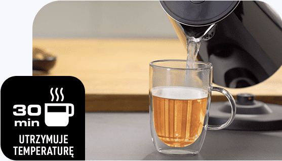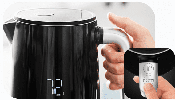 Sterowanie temperaturą w rączce czajnika jest niezwykle wygodne. Możesz zagotować wodę do temperatury 100°C za pomocą jednego dotknięcia.