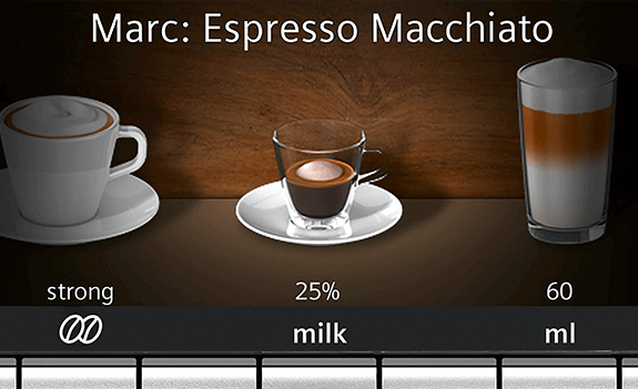 Aby stworzyć wyjątkową kawę serwowaną w filiżankach o różnych rozmiarach, potrzebna jest doskonale dopracowana technologia. Za pomocą funkcji individualCup Volume wstępnie ustawione rozmiary filiżanek, takie jak „mała”, „średnia” i „duża”, można indywidualnie dopasować w zakresie pięciu różnych ustawień pojemności.