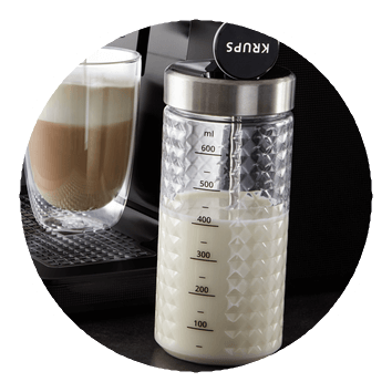 Do ekspresu dołączony jest elegancki pojemnik na mleko o pojemności 600 ml. Dzięki jego przezroczystej obudowie zawsze wiesz, ile mleka wymaga uzupełnienia, a to ułatwia korzystanie i przechowywanie.
