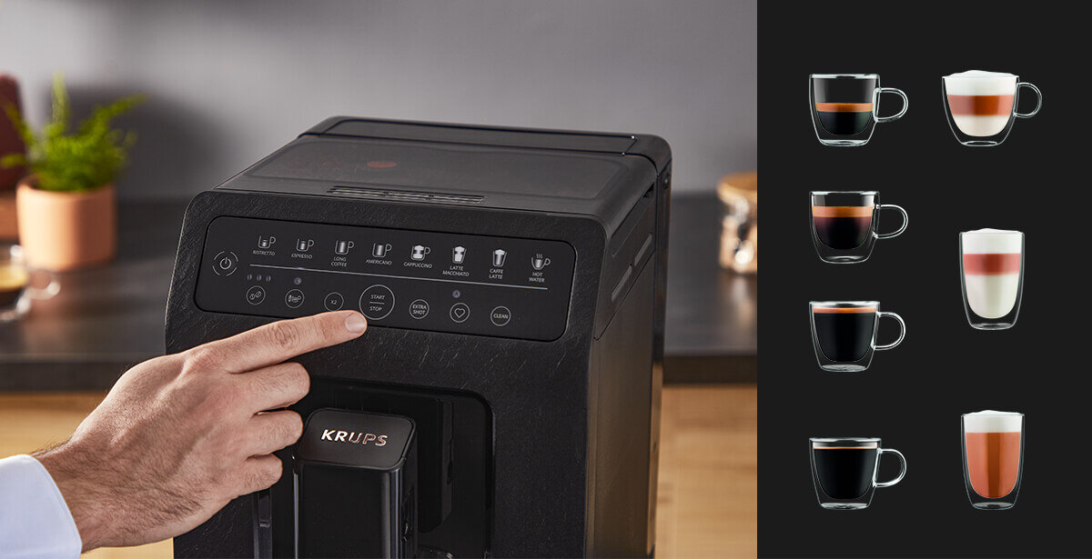 Jedno kliknięcie dzieli Cię od smacznej i aromatycznej kawy. KRUPS Evidence ECO Design gwarantuje wybór 8 automatycznych programów, dzięki którym szybko przygotujesz swoją kawę. Możesz wybrać filiżankę lub kubek, niezależnie od wysokości naczynia, ekspres posiada regulowaną wysokość miejsca wylotu kawy.