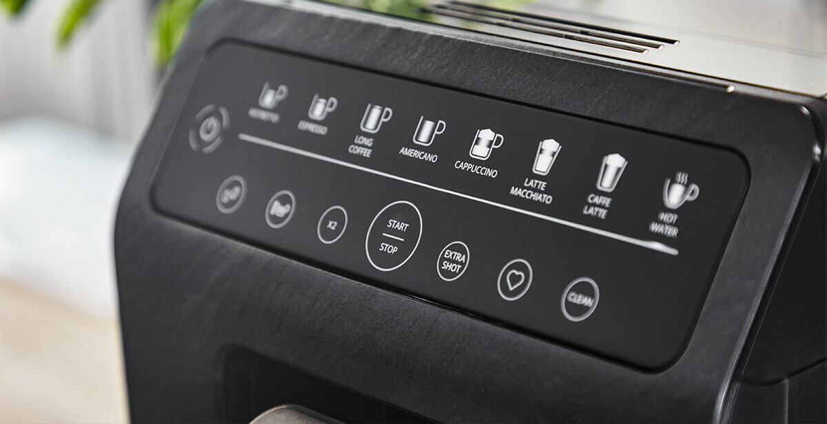Prosty w obsłudze czarno-biały panel pozwala na zrobienie ulubionej kawy niezwykle szybko.
