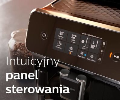 | Funkcje: | Dotykowy ekran, Funkcja Moja Kawa, Regulacja ilości zaparzanej kawy, Regulacja mocy kawy, Parzenie 2 kaw jednocześnie... |