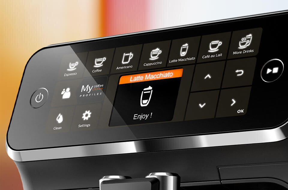 3-kolorowy wyświetlacz i dotykowy panel sterowania zapewniają łatwą i intuicyjną obsługę. W zależności od swoich upodobań, dostosujesz za ich pomocą 5 ustawień mocy, ilości kawy i mleka oraz 3 ustawienia temperatury. Już zawsze przygotujesz kawę dokładnie taką, jaką lubisz.