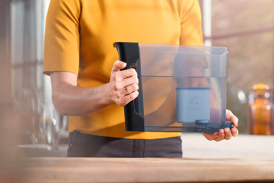 Opatentowany filtr AquaClean oczyszcza wodę i zapobiega osadzaniu się kamienia w ekspresie. Zaparzysz nawet do 5000* filiżanek kawy bez konieczności odkamieniania.