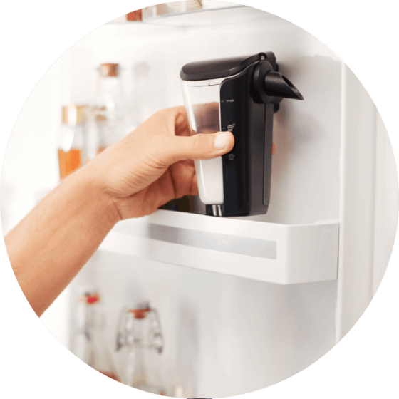 15 sekund* – tyle potrzebujesz, żeby ręcznie umyć system mleczny. Zawsze też możesz włożyć go do zmywarki.