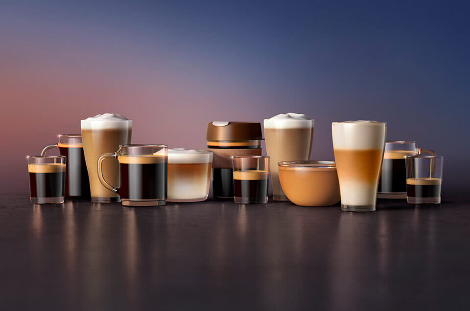 Zdecyduj, na którą spośród aż 12 rodzajów kaw masz dzisiaj ochotę. Wybieraj spośród klasycznych kaw czarnych: Espresso, Café crema, Americano, lub mlecznych: Café au lait, Flat white, Cappuccino, Caffé Latte macchiato czy Café latte.