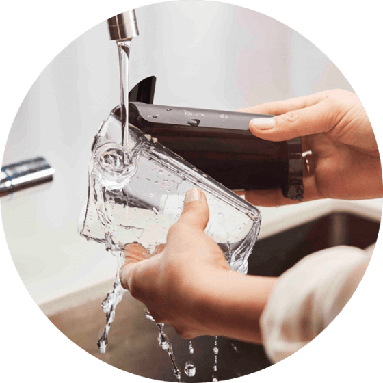 15 sekund* – tyle potrzebujesz, żeby ręcznie umyć system mleczny. Zawsze też możesz włożyć go do zmywarki.