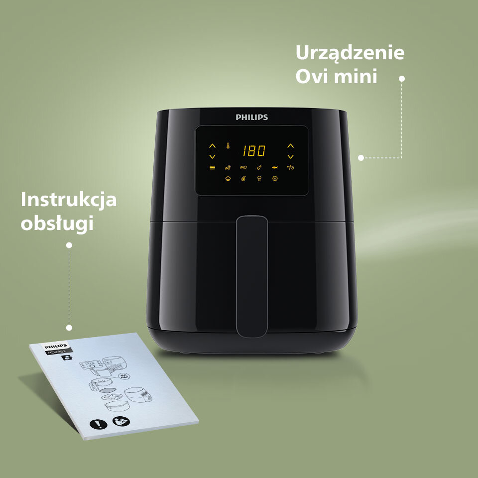 - Air Fryer Frytkownica beztłuszczowa PHILIPS Essential Ovi Mini HD9252/90 4.1l programator czasowy