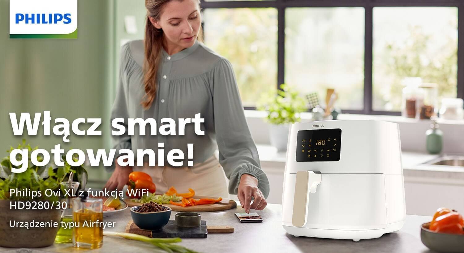 - Air Fryer Frytkownica beztłuszczowa PHILIPS Essential Connected Ovi XL HD9280/30 Biały (Wi-Fi)