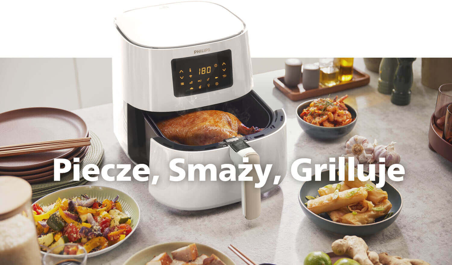 Wystarczy jedynie nacisnąć przycisk, by przygotować mrożone przekąski, świeże frytki, mięso, ryby, udka z kurczaka, grillowane warzywa, czy ciasta. Urządzenie posiada