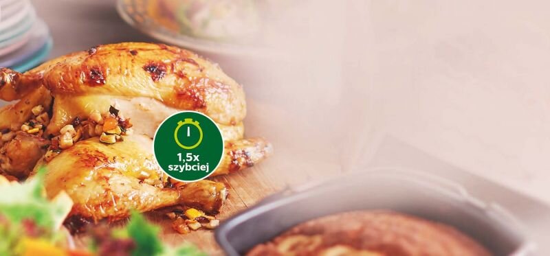 1,5x niż w piekarniku* i bez nagrzewania. Mniej czasu w kuchni to więcej czasu dla Ciebie i Twoich bliskich.