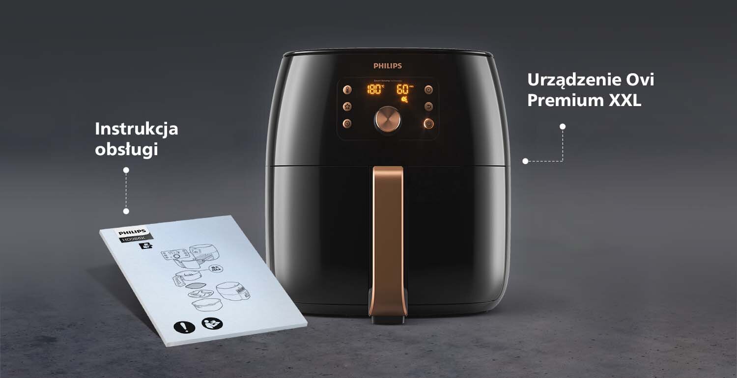 Instrukcja obsługi Air Fryer Frytkownica beztłuszczowa PHILIPS Ovi Smart XXL HD9867/90 7.3l 1000 darmowych przepisów