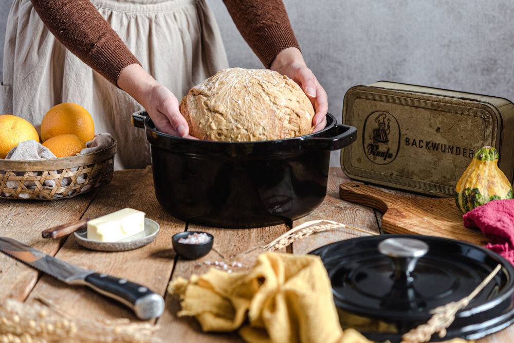 Naczynie jest odporne na wysokie temperatury, dlatego idealnie sprawdzi się do smażenia oraz pieczenia w piekarniku, np. mięs czy chleba.