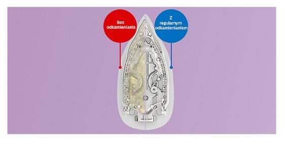 De-Calc Plus informuje o konieczności odkamienienia żelazka i przedłuża jego