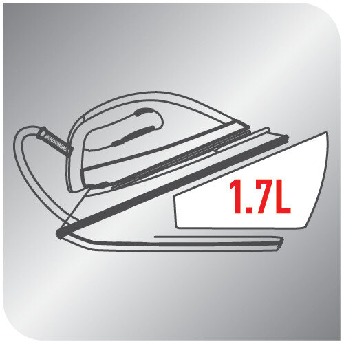 Wyjmowalny zbiornik na wodę o poj. 1,7 l można napełnić w dowolnym momencie podczas pracy, znacznie ułatwiając sobie prasowanie.