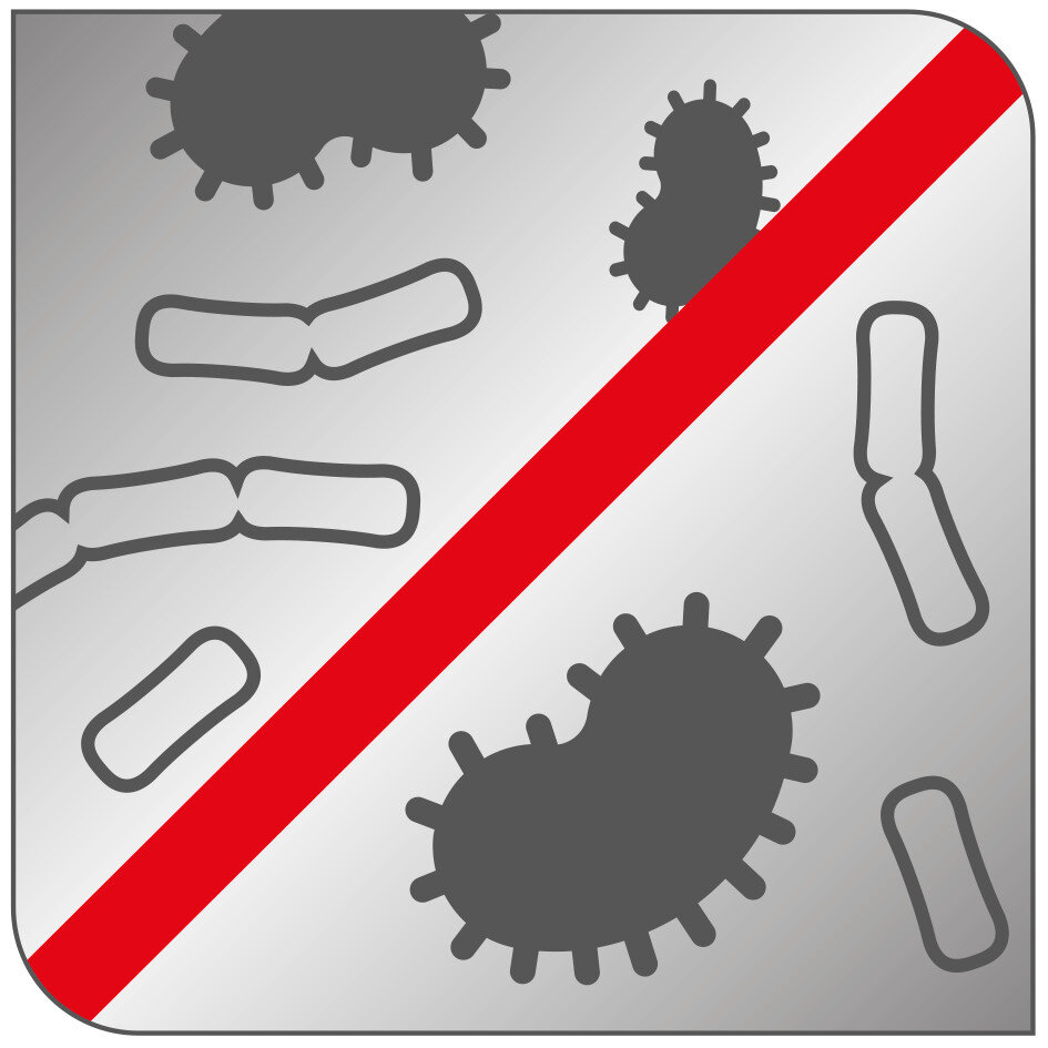 Wykorzystując połączenie temperatury i pary urządzenie zabija nawet do 99,99% bakterii we wszystkich nadających się do prasowania tkaninach.