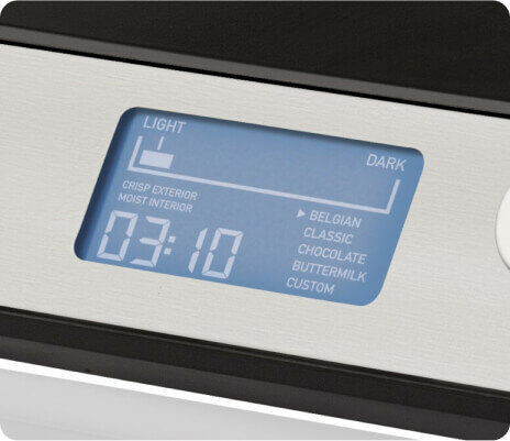 Możesz wybrać stopień pieczenia gofrów w zależności od Twoich preferencji. Dodatkowo stopień wypieczenia sprawdzisz bez otwierania pokrywy, ponieważ wszystko wyświetla się na wielofunkcyjnym wyświetlaczu.