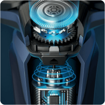 Analizuje gęstość zarostu i dopasowuje do niej odpowiednią prędkość golenia.