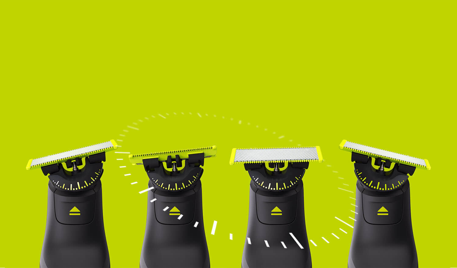 Ostrze OneBlade 360 idealnie dostosowuje się do konturów Twojej twarzy, umożliwiając elastyczny ruch w każdym kierunku. To daje Ci pełną kontrolę i stały kontakt ze skórą. Bez trudu możesz przycinać i golić włosy, nawet w trudno dostępnych obszarach. Osiągnij pełną wygodę i skuteczność - wystarczy kilka ruchów, aby uzyskać doskonałe rezultaty.