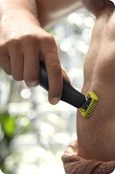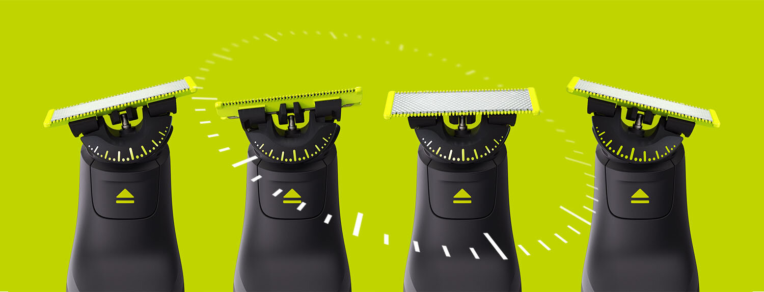 Dzięki możliwości swobodnego kierowania ostrzem OneBlade 360 w dowolnym kierunku, masz wygodę przycinania zarostu na ciele lub twarzy.