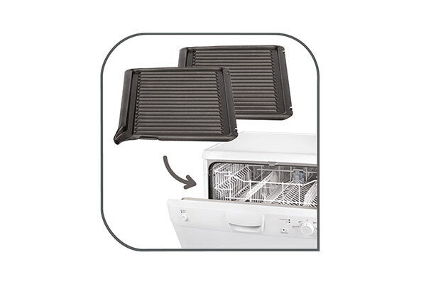 | Wytrzymałe wyjmowane płyty pokryte powłoką nieprzywierającą z możliwością mycia w zmywarce. |