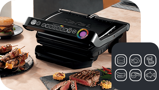 Korzystaj z 6 automatycznych programów na każdą okazję. Odkryj programy do: czerwonego mięsa, burgera, kurczaka, ryby, warzyw, panini, oraz kiełbasy. Przygotuj szybko nawet zamrożone potrawy dzięki funkcji do mrożonek.