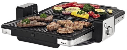 Płyty można ustawić w 2 wariantach: obie poziomo do grillowania filetów, szaszłyków, kiełbasek oraz z możliwością złożenia i opiekania np. steków albo tostów. Zastosowano w nim technologię Vario-Flex umożliwiającą dopasowanie płyt grzewczych do wysokości opiekanych produktów.