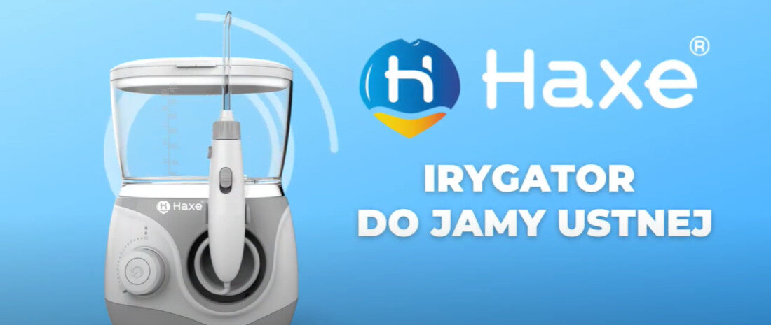 Irygator HAXE HX722 wyposażony jest w duży, 600-mililitrowy pojemnik na wodę, którego pokrywa pełni funkcję pojemnika do przechowywania czterech końcówek. Dodatkowymi zaletami irygatora stacjonarnego są metrowy wąż, łączący rączkę z urządzeniem, zapewniający swobodę ruchu podczas irygacji oraz magnes w rączce, który ułatwia jej odkładanie na miejsce.
