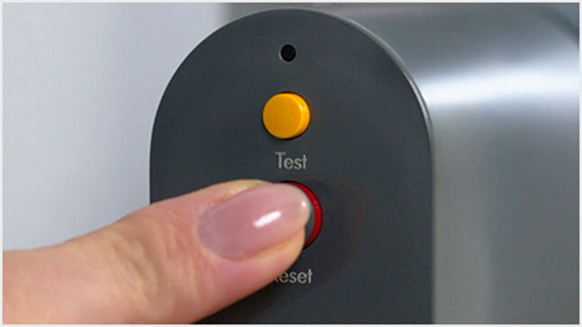 Dla zapewnienia bezpieczeństwa wciśnij przycisk TEST i RESET przed każdym użyciem aeroprostownicy Dyson AirstraitTM. Zobacz instrukcję krok po kroku, znajdującą się w przewodniku online.