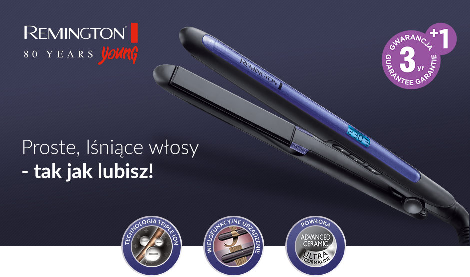 Prostownica Remington PRO-Ion zapewnia efekt pięknych, eleganckich włosów, bez niesfornych kosmyków dzięki wykorzystaniu innowacyjnej technologii Triple Ionic, uzbrajającej Twoje włosy w jony ujemne od nasady aż po końce.