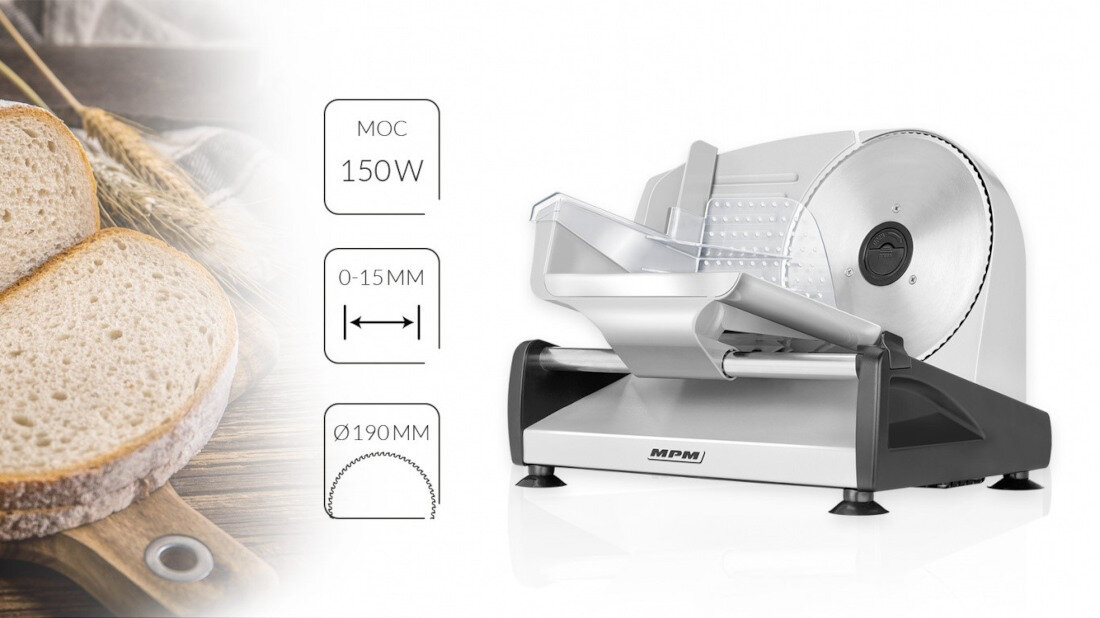 Dla Twojej wygody producent zastosował w prezentowanej krajalnicy płynną regulację grubości krojenia w zakresie 0-15 mm. Dzięki temu za pomocą sprzętu otrzymasz plastry szynki, sera i chleba dostosowane do preferencji. Co więcej, model ten wyposażono w solidny nóż ze stali nierdzewnej o średnicy 190 mm. To sprawia, że maszyna świetnie poradzi sobie nawet z twardszą żywnością.