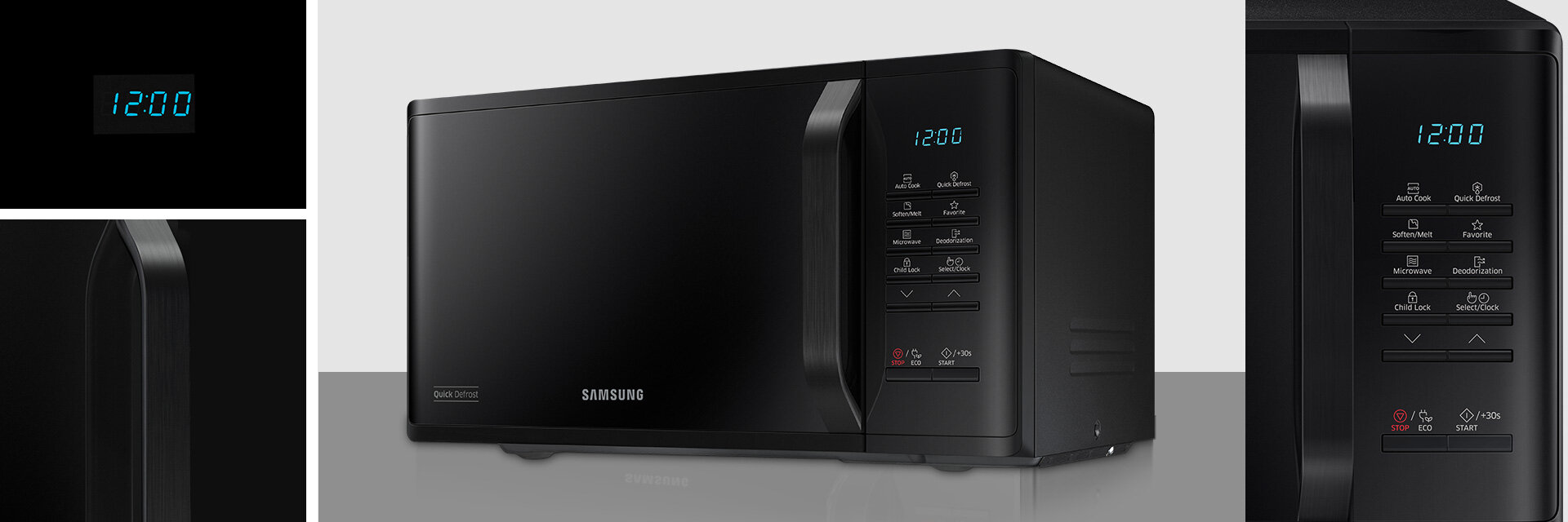 - Kuchenka mikrofalowa SAMSUNG MS23K3513AK 800W średnica 28.8 cm pojemność 23L Quick Defrost Auto Cook SteamClean Czarny