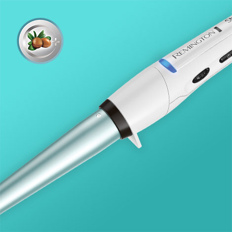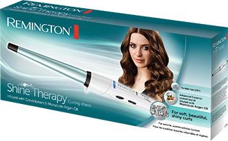 Lokówka stożkowa Remington Shine Therapy zapewnia profesjonalne, łatwe do uzyskania rezultaty, kreując sprężyste loki i fale. Pokryta jest powłoką Advanced Ceramic, która sprawia, że włosy stają się gładkie, a Ty masz lepszą kontrolę nad procesem stylizacji. Marokańskie olejki arganowe, w które została wzbogacona powłoka, odżywiają i wygładzają włosy przy każdym użyciu. Dzięki kombinacji tych elementów lokówka nie plącze i nie ciągnie włosów.