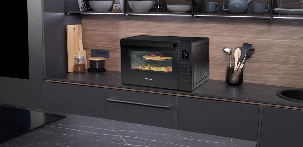 Minipiekarnik HISENSE z łatwością zastąpi pełnowymiarowy piekarnik w mniejszej kuchni. Możesz w pełni dostosować swoje użytkowanie, wybierając jedną z pięciu różnych kombinacji trybów ogrzewania (ogrzewanie górne i dolne w połączeniu z ogrzewaniem konwekcyjnym lub obiegowym powietrzem), ustawiając temperaturę w zakresie 40-230°C i czas do 180 minut.