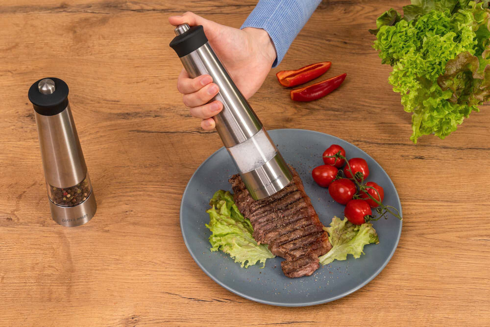 Zestaw młynków GÖTZE & JENSEN KA102 dostarczy Ci świeżo zmielonej soli i aromatycznego pieprzu bez żadnego wysiłku. Regulowana grubość mielenia pozwoli Ci szybko dopasować przyprawę do posiłku i swoich upodobań. Zastosowane w młynkach ceramiczne żarna nie nagrzewają się podczas pracy, a do tego są wytrzymałe i dokładne.