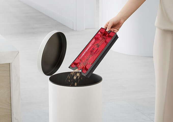 Zanieczyszczenia są zbierane do łatwo wyjmowanej tacy, zapewniając higieniczne i bezdotykowe opróżnianie wprost do kosza na śmieci.