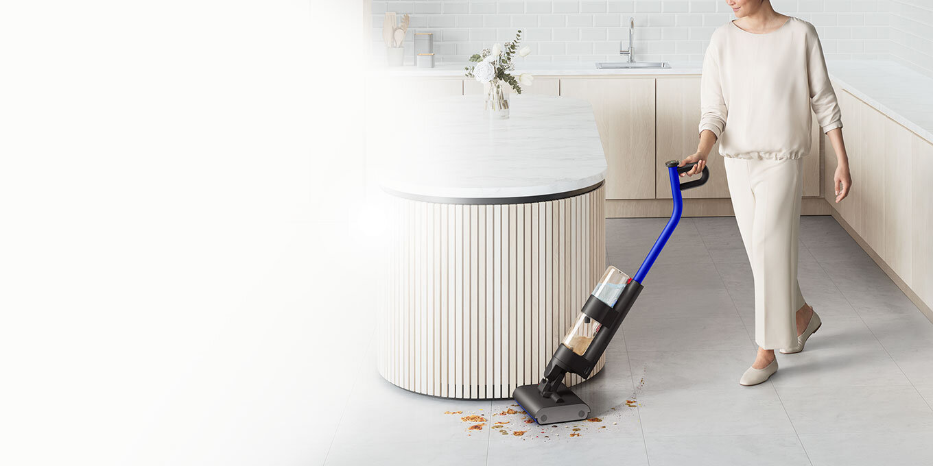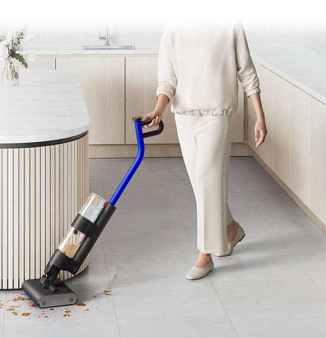 Szczotki obracają się w przeciwnym kierunku, dzięki czemu odkurzacz bezprzewodowy Dyson WashG1™ z funkcją aktywnego mycia jest łatwy w manewrowaniu. Jego konstrukcja umożliwia sprzątanie pod nisko położonymi meblami i pomaga dotrzeć do trudno dostępnych miejsc i zakamarków.