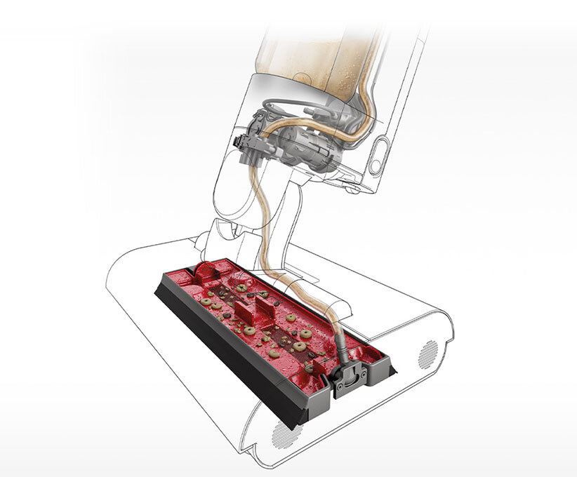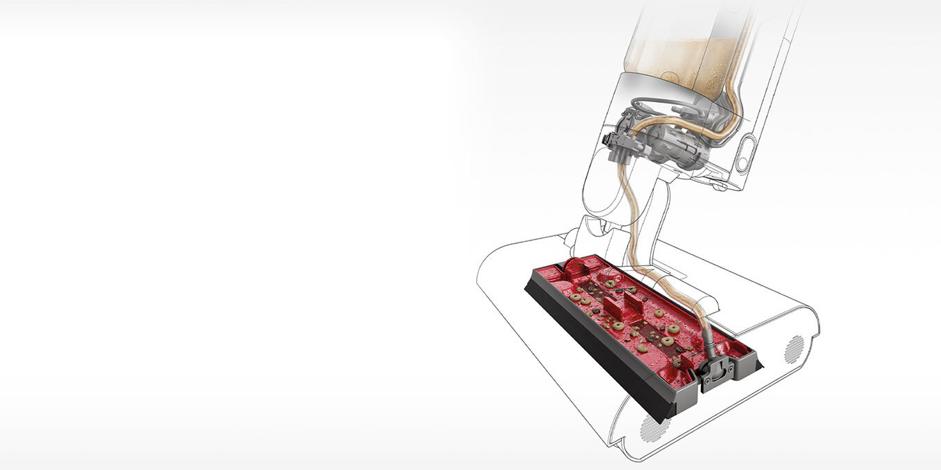 Napędzane silnikiem szczotki Dyson zostały zaprojektowane tak, aby przy każdym przeciągnięciu szorowały plamę dwukrotnie - dzięki czemu umożliwiają szybkie usuwanie plam.