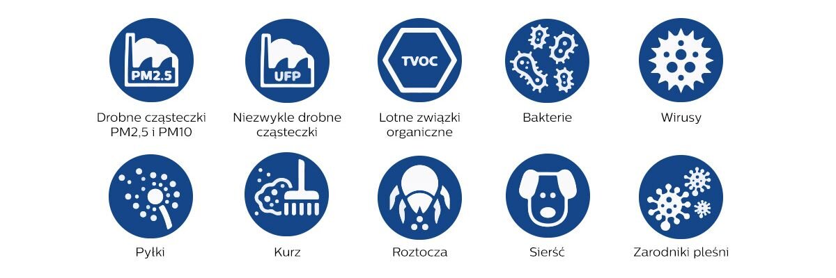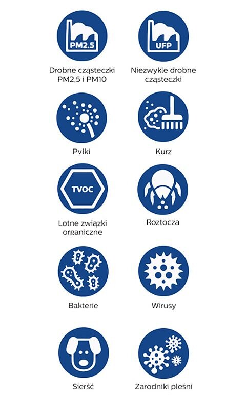 Filtruje cząsteczki o rozmiarze mniejszym niż PM2,5