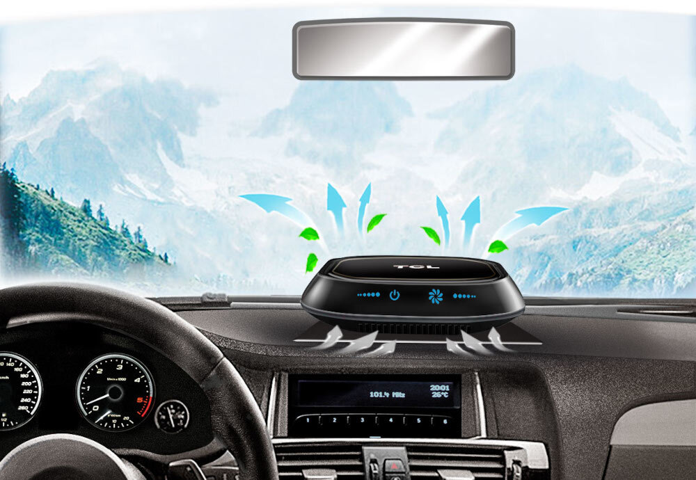 Zanieczyszczenia powietrza z zewnątrz mogą łatwo przedostać się do wnętrza Twojego samochodu przez otwarte drzwi i okna. Naturalna wentylacja może wprowadzać do środka alergeny oraz cząsteczki pyłu zawieszonego PM2,5, które przyczyniają się do tworzenia smogu. Dlatego korzystanie z dodatkowych oczyszczaczy jest tak istotne. Oczyszczacz powietrza samochodowy modelu TCL KJ5F to eleganckie i wydajne urządzenie, wyposażone w nowoczesną technologię filtrowania. Perfekcyjnie neutralizuje nieprzyjemne zapachy, pozostawiając powietrze świeże i odświeżone. To dedykowane rozwiązanie do użytku wewnątrz samochodu, oferujące zarówno oczyszczanie w trybie pasywnym, jak i aktywnym. Skutecznie eliminuje mikroorganizmy chorobotwórcze oraz cząsteczki alergenów.