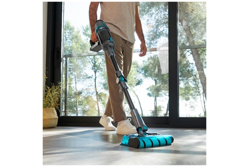 Jeżeli szukasz odkurzacza, który zapewni Ci optymalne wyniki podczas sprzątania, to ten sprzęt będzie dla Ciebie idealny. Został on wyposażony w podwójną szczotkę z napędem. Jedna z nich jest wykonana z gąbki i przeznaczona jest do twardych podłóg, a druga z dwóch materiałów z włosia i silikonu nadaje się do wszystkich rodzajów powierzchni. Takim sposobem możesz swobodnie czyścić zarówno panele, jak i dywany bez ryzyka uszkodzenia urządzenia.