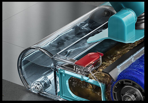 Filtr i wałek elektroszczotki można myć, a pojemnik i końcówki/akcesoria należy wytrzeć, aby usunąć nagromadzony kurz i zoptymalizować wydajność Twojego odkurzacza Dyson.