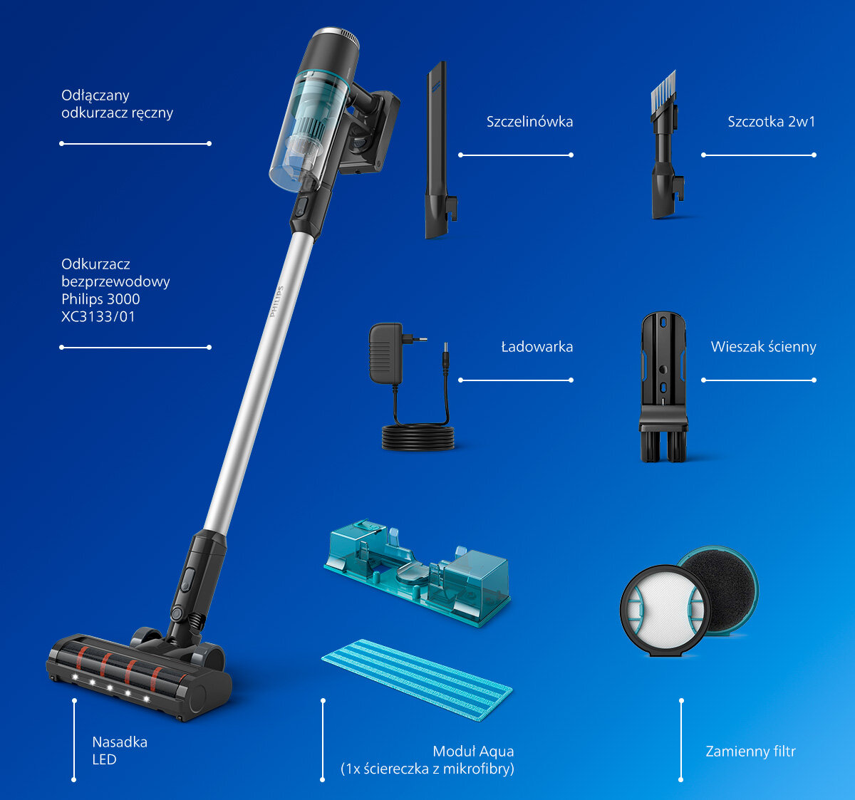 | Pozostałe wyposażenie: | 1x nakładka z mikrofibry, Zasilacz |