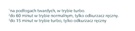 Pozwala sprzątać nieprzerwanie przez 60 minut pracy w trybie normalnym2 i 15 minut pracy z najwyższą mocą3.